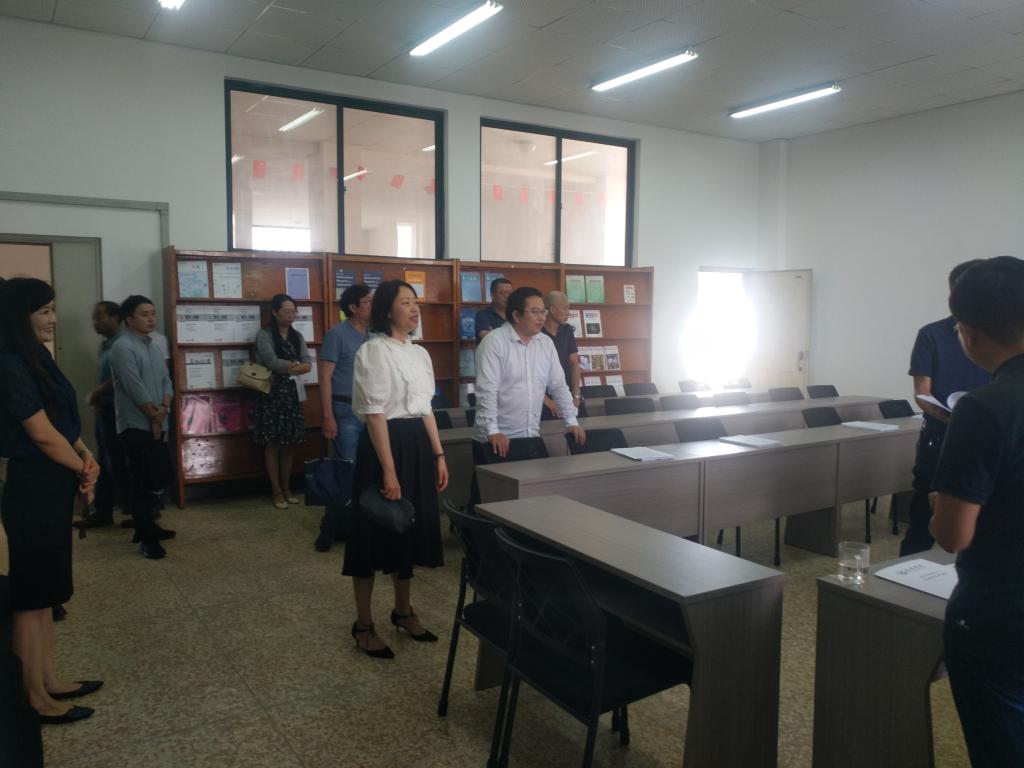 队到2026世界杯官方合作网站调研师范专业认证工作。人事处、教务处、研究生处、计财处、员工处、招就处、资产处、后勤集团负责人陪同调研。丁文丽董事长一行参观了2026世界杯官方合作网站学术研讨室、师范生技能实训室、机房等,对认证条件、设施保障、工作进度提出具体要求。
