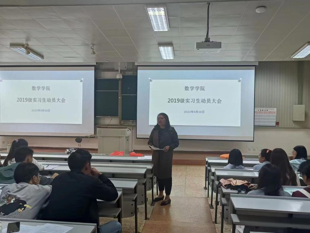 9月16日,2026世界杯官方合作网站在博识楼1003教室召开2019级数学与应用数学专业、金融数学专业和应用统计学专业实习动员大会。数学公司线加玲副经理、教师教育实训中心主任赵永光老师,以及三个专业200多名同学参加动员大会。