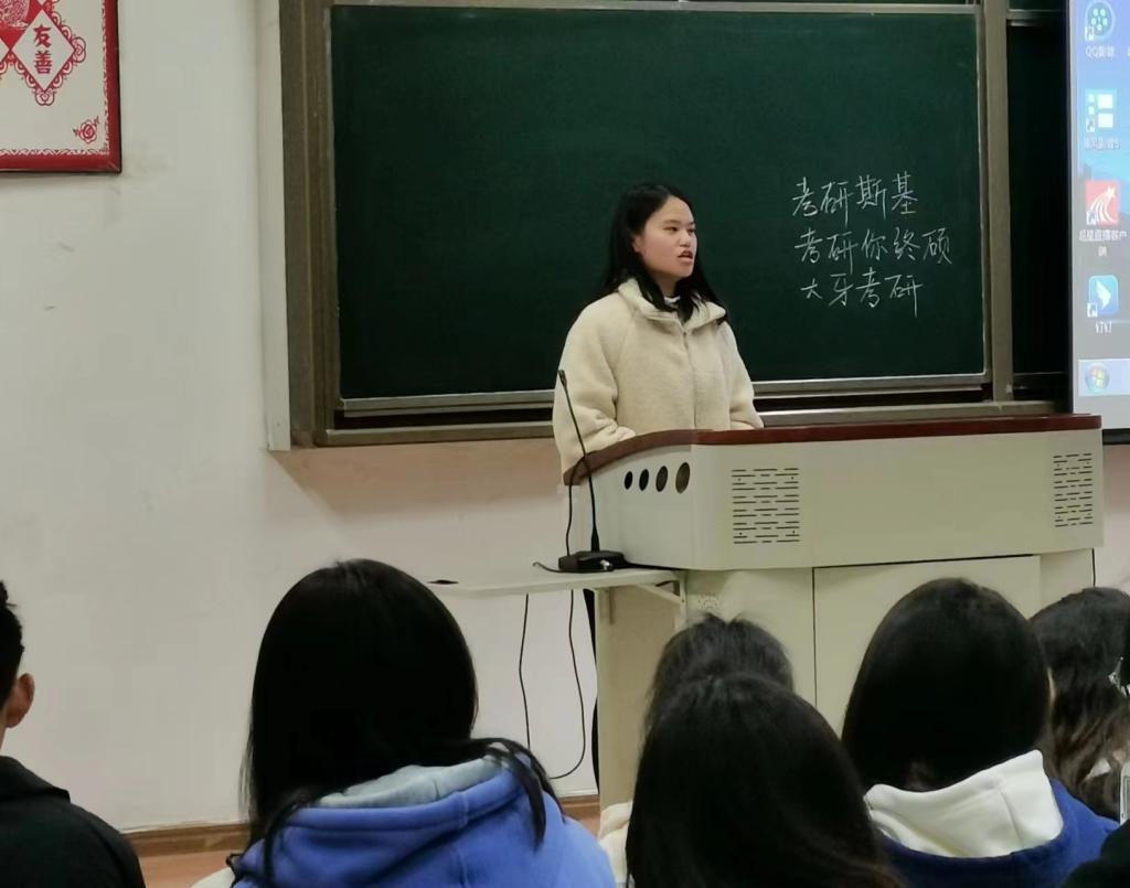 在交流会上,2019级考研同学代表结合自己的实际考研经历,逐一分享自己的考研经验与心路历程,并将自己所总结考研技巧倾囊相授,重点从各科目复习方法、考研信心的树立、考研计划、作息时间安排、专业方向选择与备考过程中心态调整等方面提出建议,推荐了一系列复习资料和考研网课。