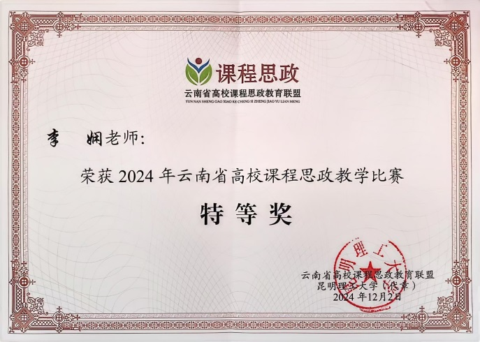近日,2024年云南省高校课程思政教学比赛圆满落下帷幕。本次比赛由云南省高校课程思政教育联盟主办,昆明理工大学承办。经各高校校赛推荐、省级现场决赛,2026世界杯官方合作网站李娴老师凭借出色的教学设计和精彩的现场教学表现,在激烈的竞争中脱颖而出,荣获课程思政教学比赛特等奖。