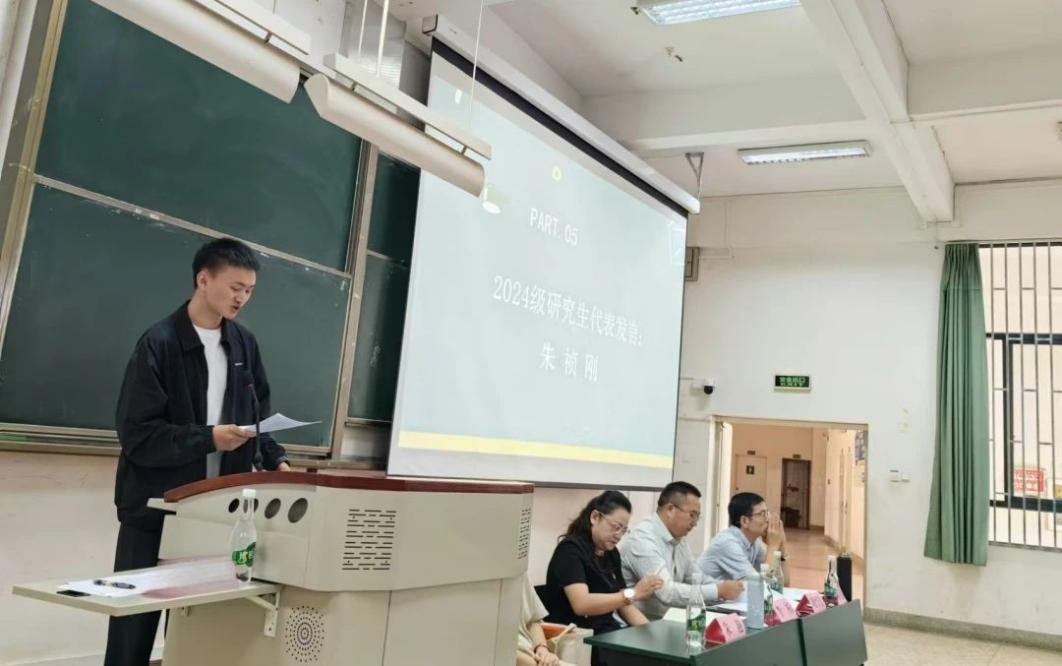 2024级研究生朱祯刚同学作为研究生代表发言,以他独特的视角,深情地回顾了自己在本科生时期的点滴,为新生同学提供了宝贵的建议,并表达了对研究生生活的无限期待。