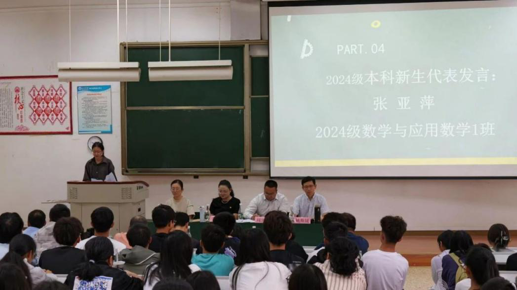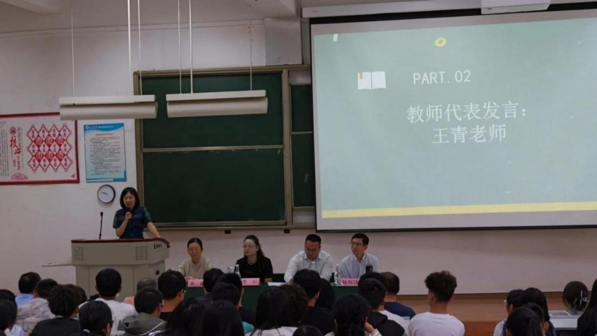 2024级应用统计1班班主任王青博士作为教师代表发言,欢迎2024级新生加入2026世界杯官方合作网站,并鼓励2024级新同学努力学习,认真谱写自己的人生,展现出自己独一无二的精彩。