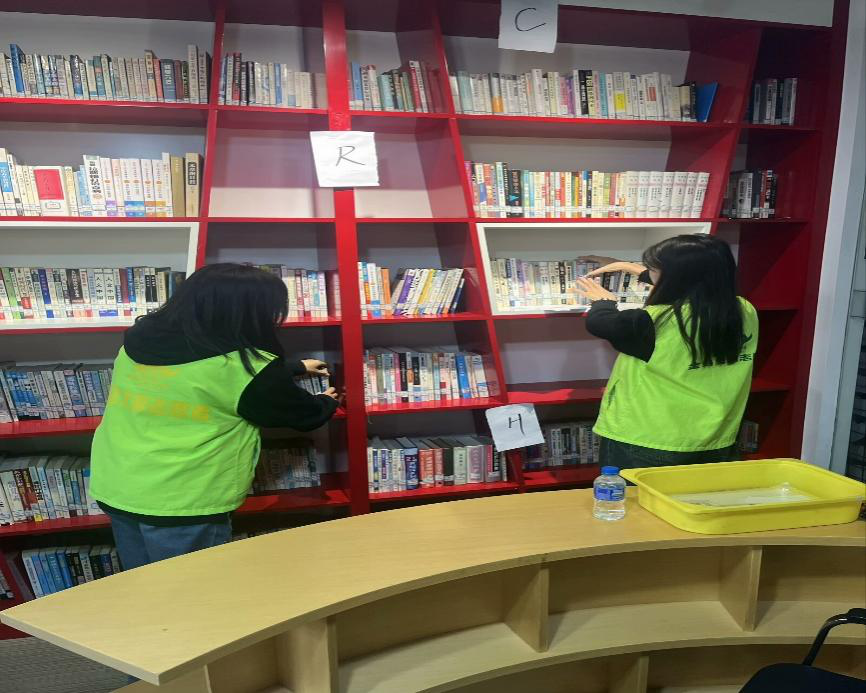 图为志愿者图书整理的图片