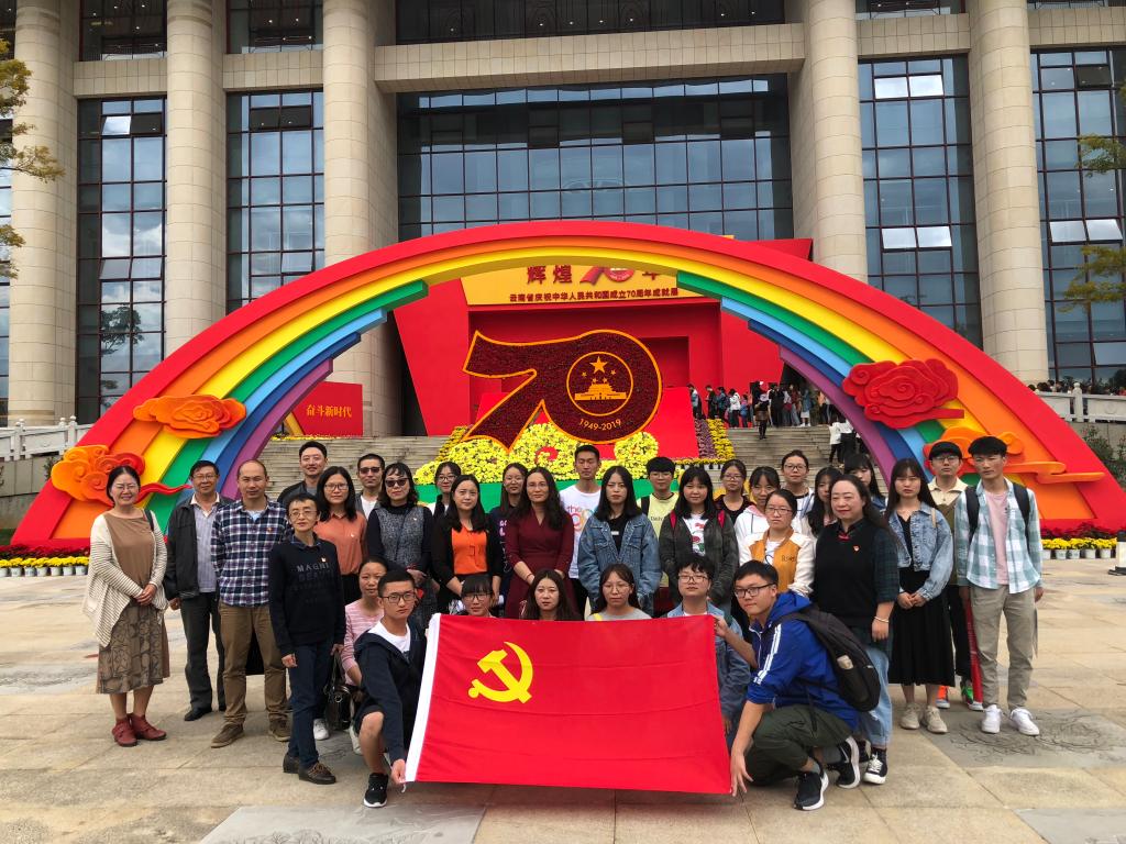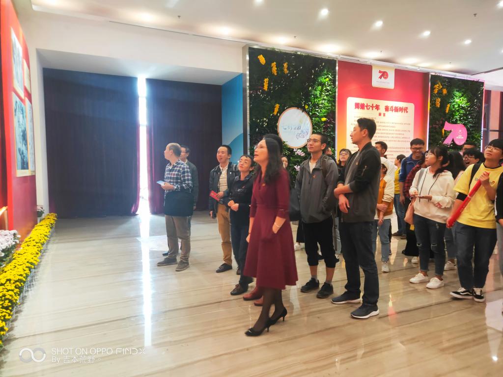 教师支部和员工一支部全体党员和部分入党积极分子共40余人赴云南文学艺术馆参观“云南庆祝中华人民共和国成立70周年成就展”。成就展集中展示了中华人民共和国成立七十年来云岭大地的沧桑巨变,展出面积约7500平方米,主展内容分为“序厅”、“前言”、“亲切关怀·温暖云岭”、“改天换地启征程”、“改革开放谱新篇”、“跨越奋进新时代”和“结语”7个部分,共展出文字内容9万余字,展板使用图片1600余张,收集并展示云南省重要阶段的档案资料、少数民族生产生活用品、昆明十大建筑代表模型、现代化航空和铁路交通模型等大量实物共计500余件。党员们边走边看,纷纷赞