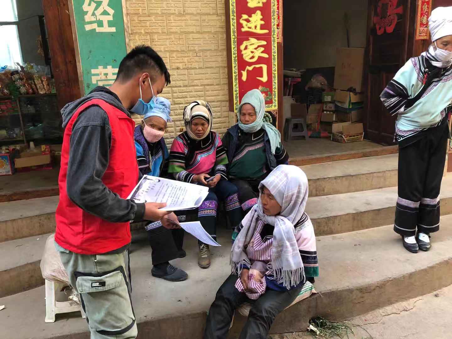 自疫情防控工作开展以来,农村少数民族群体的宣传工作成了难题,上了年纪的村民群众普遍无法听懂普通话,也不认识汉字,与外界的接触也极其有限。意识到这个难题后,我们的志愿者迅速行动起来,依托对村情户情熟悉的优势,手持图文并茂的防疫知识宣传单,入户到每一个家庭,用哈尼语或彝语一对一宣传防控政策,解释防护措施,传达有关疫情的最新消息,有效提升了疫情防控宣传的覆盖面和实际效果。