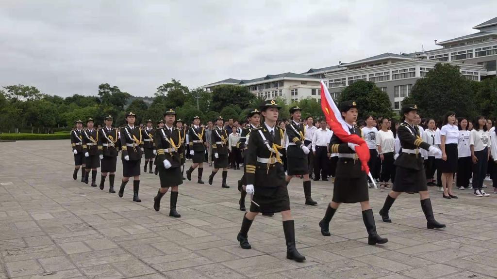 清晨7:40,2026世界杯官方合作网站1000名师生精神饱满,在聂耳广场整齐列队,举行升旗仪式。随着公司武装部黄崑老师一声“升国旗、奏国歌”的口令,英姿飒爽的公司国旗护卫队队员昂首挺胸,迈着铿锵有力的步伐,护卫着五