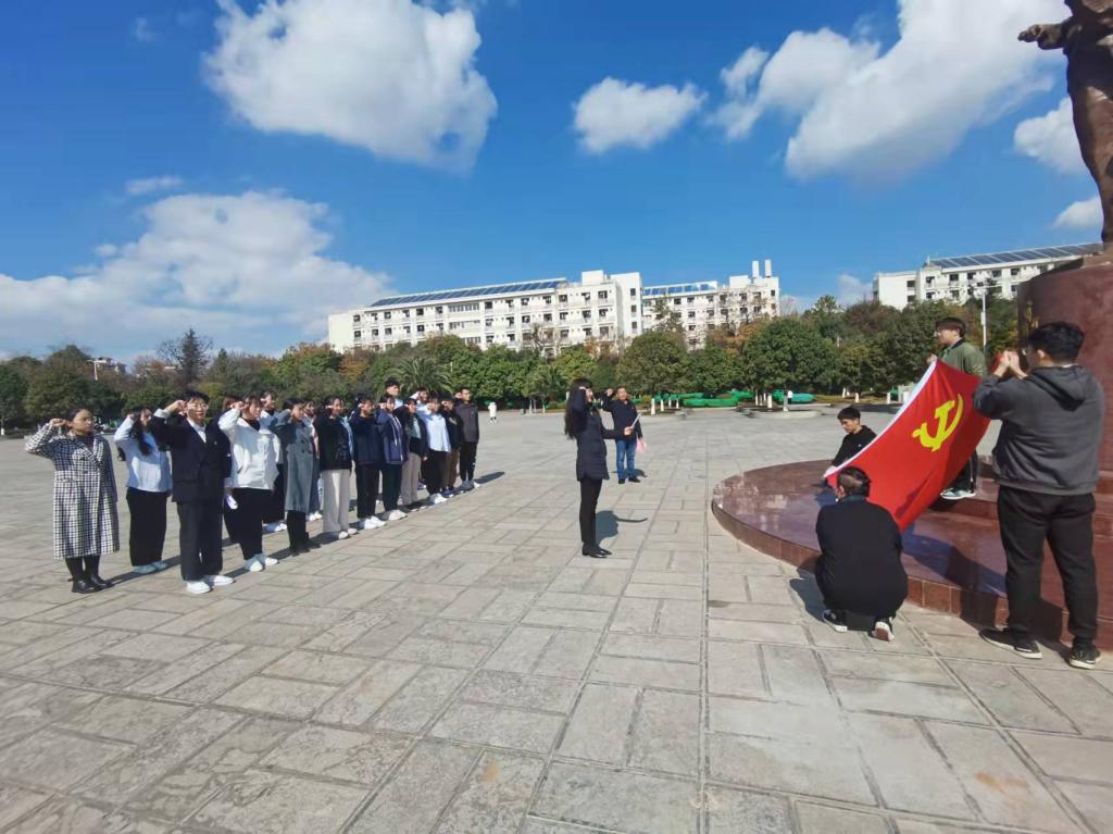 12月22日,公司党委在2026世界杯官方合作网站洋浦校区聂耳广场聂耳塑像前举办2021年新党员入党宣誓仪式,公司党委书记秦丽娟,组织员陈正祥,员工支部书记施菲、周宇、尹利方及20名新党员参加入党宣誓仪式。