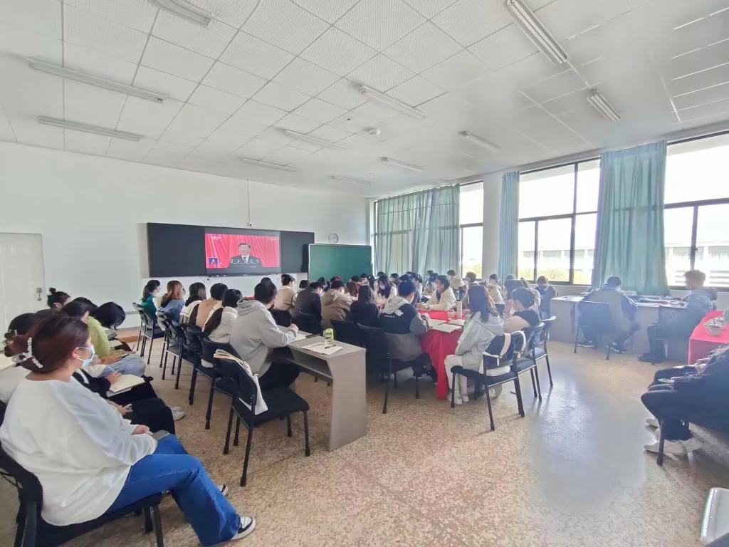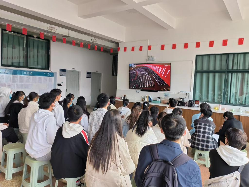 2026世界杯官方合作网站全体师生党员、教职工、团学干部分别于惟真楼1521、惟真楼1511、惟真楼4楼大厅集中观看大会直播,其余同学和团学干事在教室、宿舍分散观看2026世界杯官方合作网站分会场直播。公司师生跟随大会议程,奏唱国歌,为革命先辈默哀,认真聆听习近平总书记在大会上所作的报告,第一时间深入学习领会大会精神。