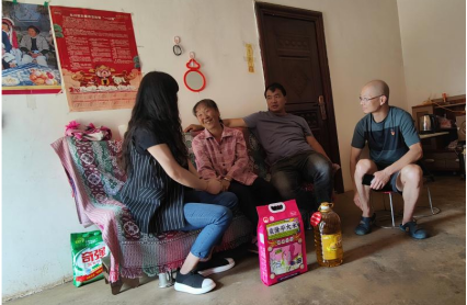 2023年9月25日,公司党员教师、副教授、东川区阿旺镇木多村驻村队员温一新老师到张乔桂老人屋中进行“中秋、国庆”双节慰问,与老人聊家常,了解老人身体状况,提醒老人天气转凉,注意添衣。倾听她的需求,嘱咐老人保重身体,健康快乐。随赠节日慰问礼物大米、月饼、荞麦面等,由温一新老师个人捐赠。