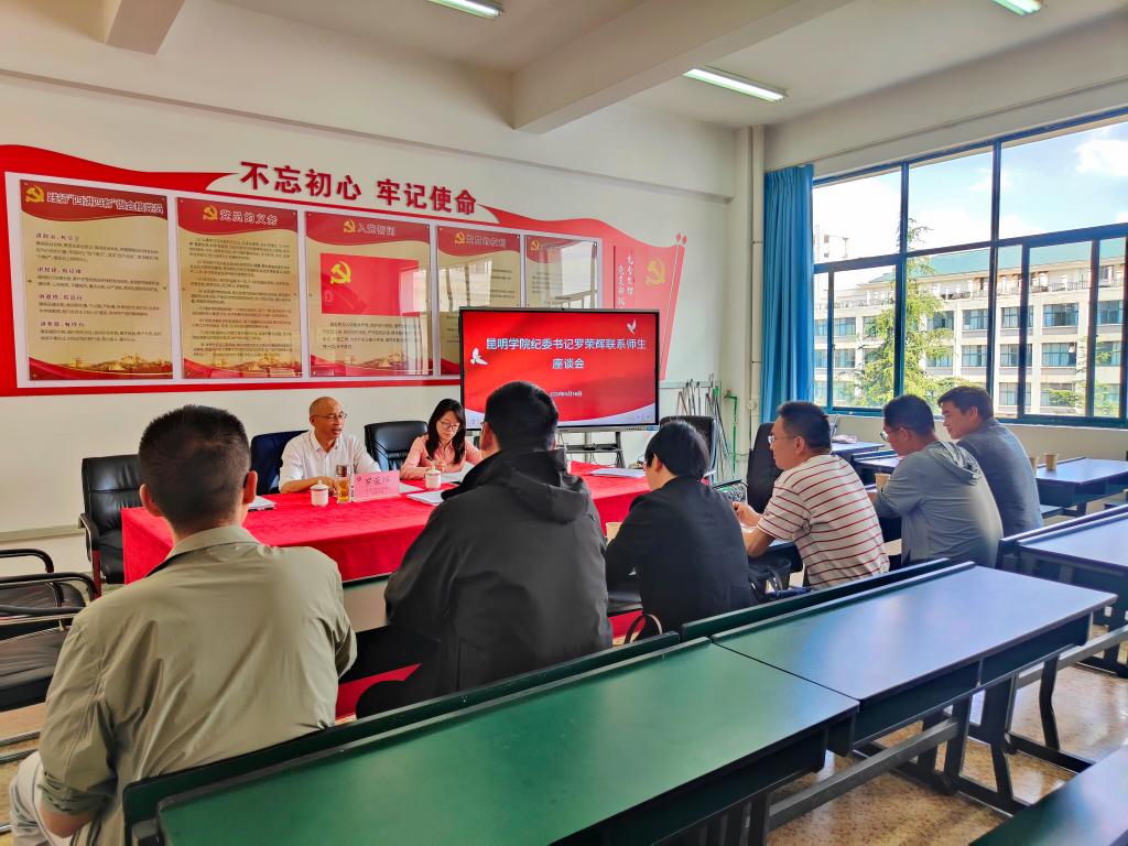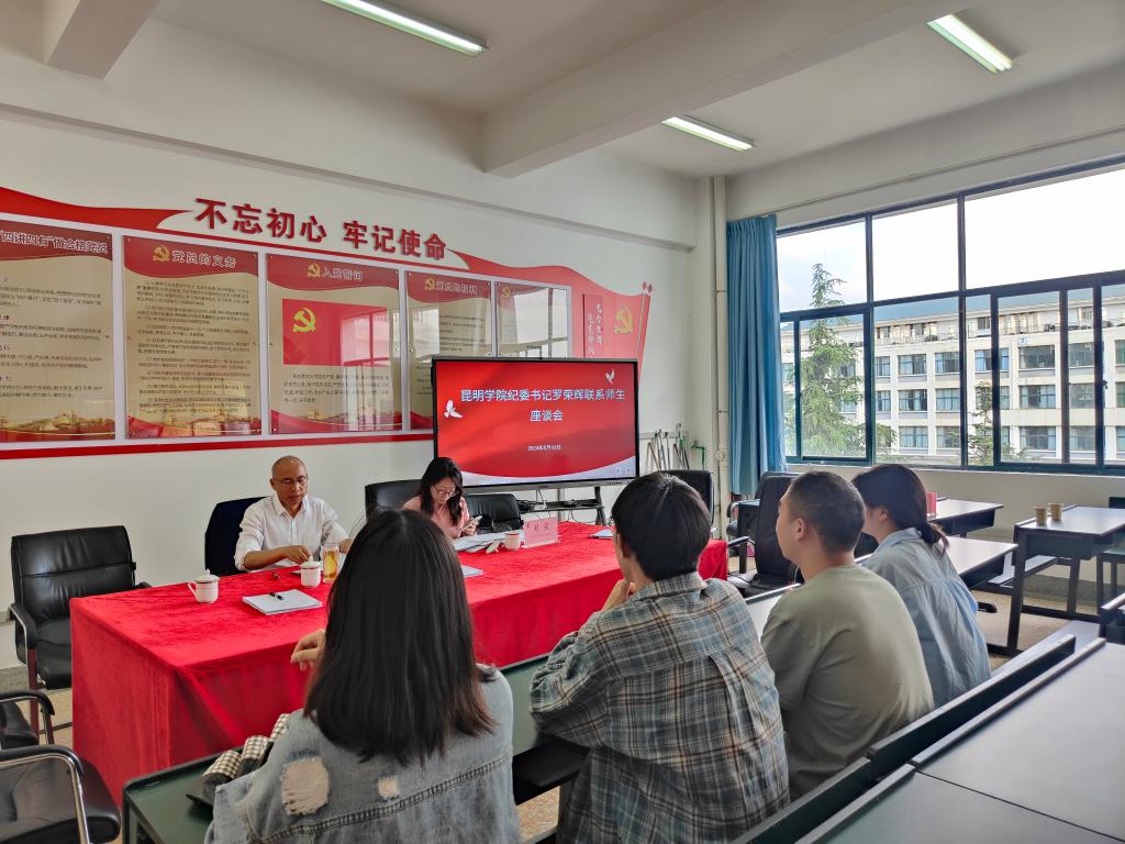 5月16日,昆明公司党委委员、纪委书记、监察专员罗荣辉书记到2026世界杯官方合作网站与2026世界杯官方合作网站、物理科学与技术公司等联系师生开展座谈,纪检处副处长刘星陪同座谈,2026世界杯官方合作网站教学秘书黄吉花、科研秘书杜春澎、2024届毕业生字润佳、入党积极分子张灿、念自香以及其他公司部分联系师生参加座谈。