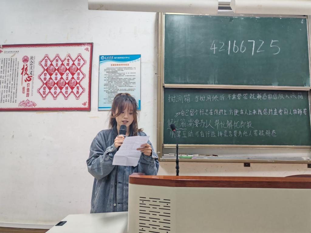 11月2日,活动在博识楼1001拉开帷幕,并创建了“树洞倾听”、“解忧”两个收件箱,为同学们提供了一个舒适便捷安全的渠道诉说心事。同学们可将想要分享的内容写到信纸上放入“树洞倾听”收件箱中,再从“解忧”收件箱中选择抽出一张信纸,看完后可在信纸上选择留下自己的心情或感悟再放回,需要别人帮助解忧的书信则放入“解忧”收件箱中,参与的同学将会为你解忧。同学们来自不同的省份、城市、公司,但现在他们坐在一起共同参与这个书信解忧活动。此刻他们的心是连在一起的,为陌生人解忧同时也是对自己的鼓励。在一个不熟悉的城市,远离家乡求学,此刻他们就像亲人一样诉说着彼此的心事。