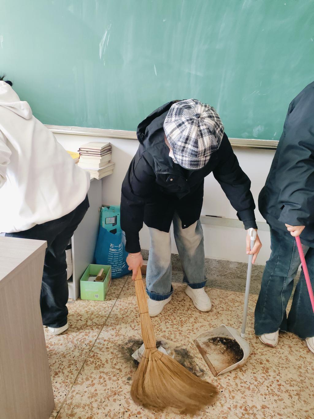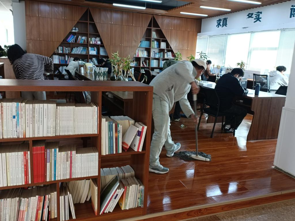 活动当日下午4点,志愿者们准时在指定地点集合,志愿者们迅速分组,奔赴各自负责的区域,一场热火朝天的校园清扫行动就此拉开帷幕。本次清扫的重点区域包括考研自习室、楼道以及楼梯等。志愿者们在清扫过程中格外注意避免垃圾随意丢弃或造成二次污染,在考研自习室,志愿者们认真擦拭书架、书桌和窗台,清扫地面,还细心整理了图书,将摆放凌乱的书籍一一放回原位。