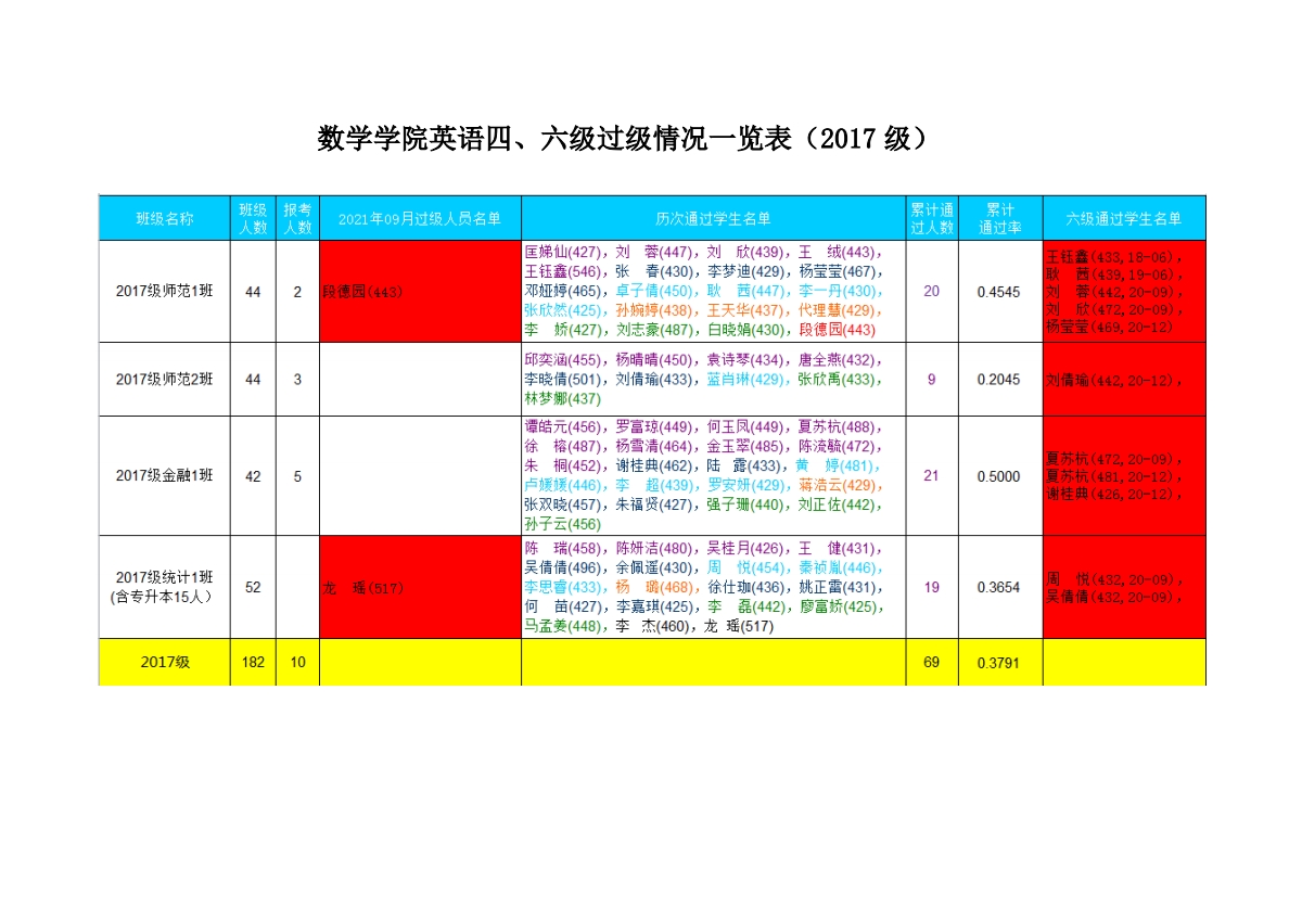 20级辅导员助理英语四级过级喜报