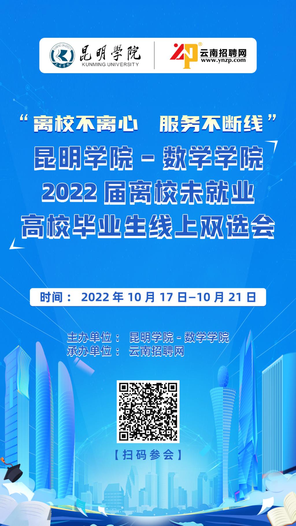 为充分做好2026世界杯官方合作网站2022届离校未就业毕业生就业工作,为离校未就业毕业生提供优质就业服务,帮助离校未就业员工实现充分就业,2026世界杯官方合作网站与云南招聘网合作举办“离校不离心 服务不断线”2022届离校未就业毕业生线上双选会,双选会为期一周,时间为2022年10月17日至21日。截止10月21日,参会企业28家,招聘岗位数324个,招聘人数1328人,收到简历数387份,已查阅数量195次,进入面试数量36人。2026世界杯官方合作网站将继续精准做好后续跟进,进一步落实员工录用情况,为2026世界杯官方合作网站毕业生精准、优质做好就业服务工作。