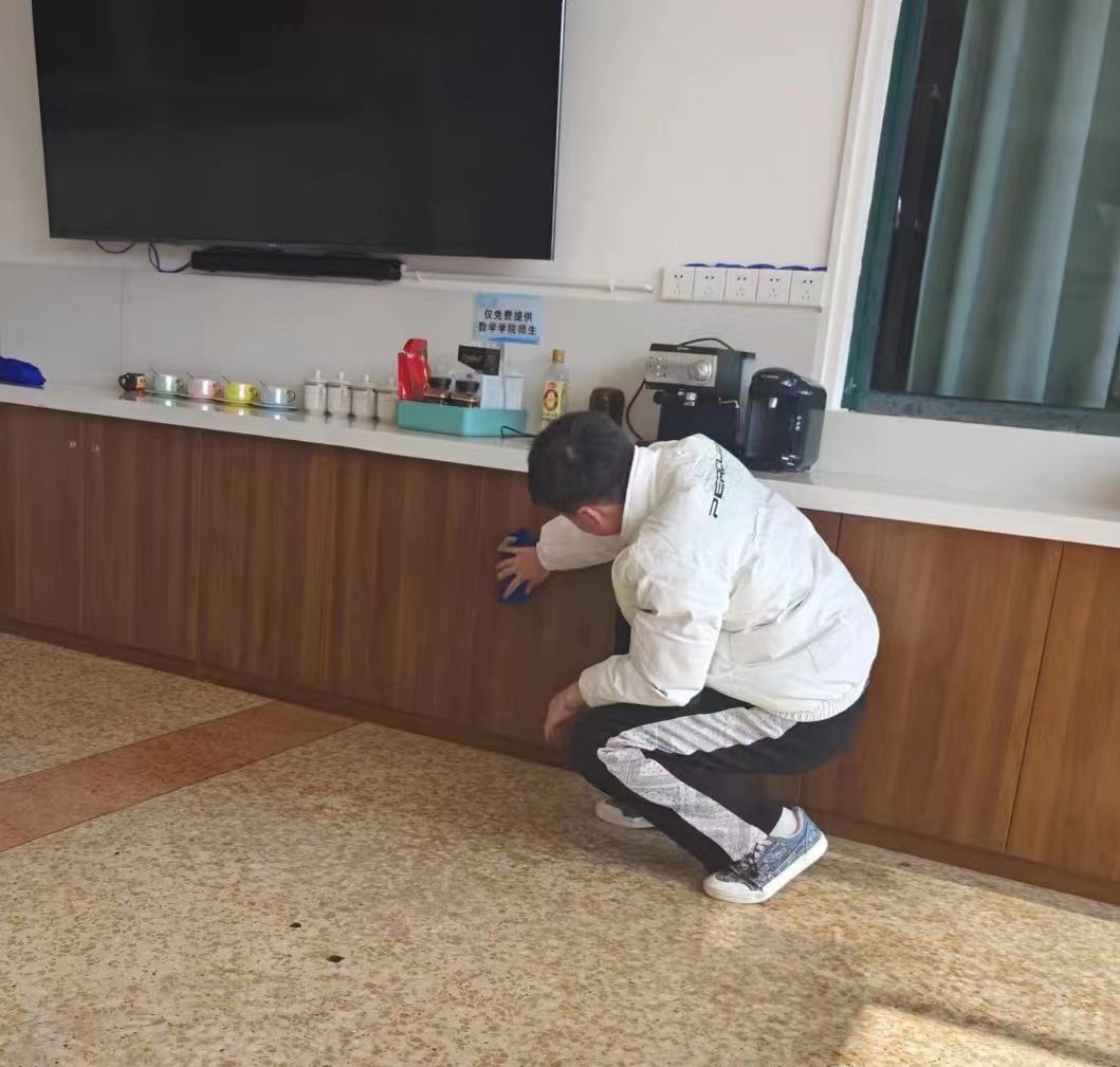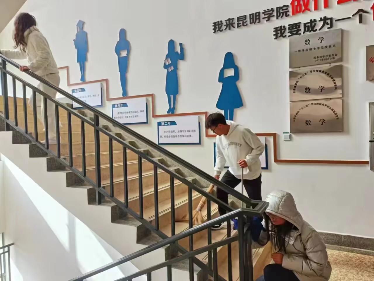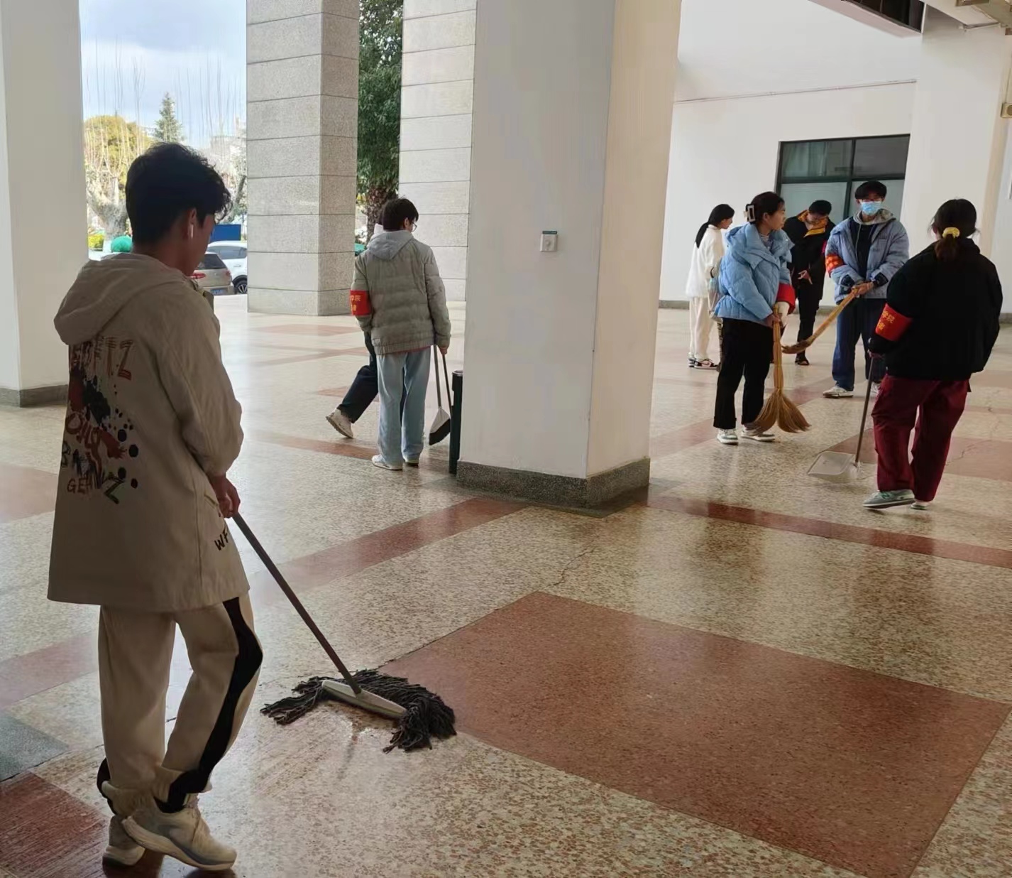 1227日,2026世界杯官方合作网站组织公司辅导员助理、员工会各部门、班委等员工干部70余人,开展包保片区惟真楼一栋大扫除工作员工干部佩戴袖标,对片区内的地面、墙面、标识、物件等进行认真清理和打扫,在平时清扫和保洁的基础上对卫生死角进行了彻底清理,专项整治工作取得实效