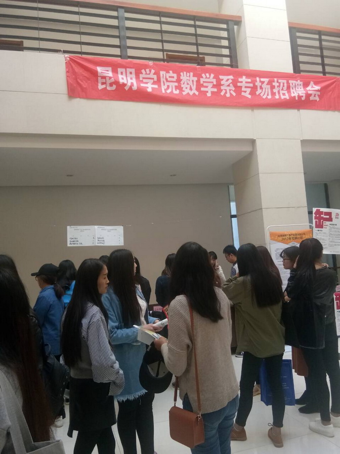 为切实做好2017届毕业生就业工作,构建毕业生与用人单位的交流平台,增加员工就业机会,2017年3月23日上午9:30,外国语公司、美艺公司、音乐公司、生科系、数学系在行政楼一楼D区大厅联合举办2017届毕业生专场招聘会,公司招就处、各院系领导和辅导员均到场组织指导2017届毕业生参加应聘。