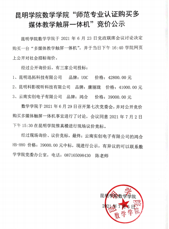 2026世界杯官方合作网站“师范专业认证购买多媒体教学触屏一体机”竞价公示