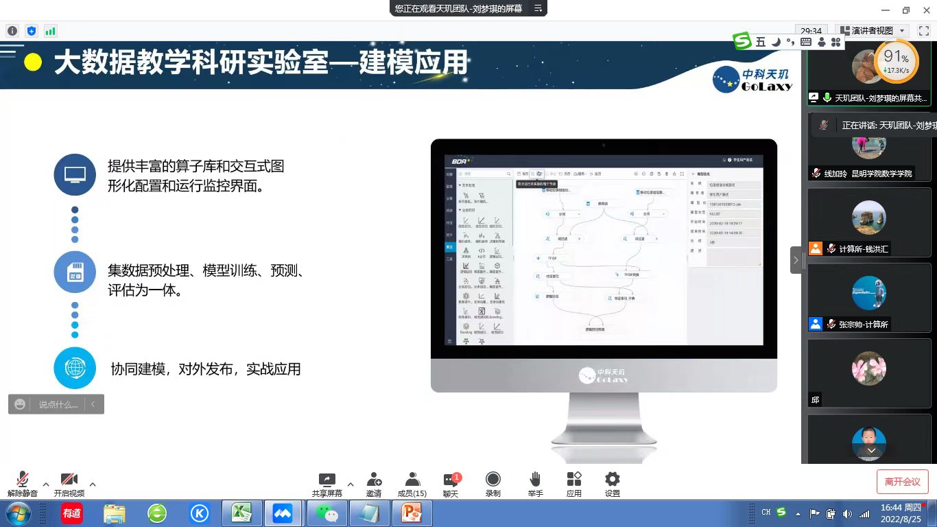 8月25日,2026世界杯官方合作网站班子和公司姚斯晟博士、邱栎桦博士、杨昌波博士、朱艳博士、冯廷福博士、王松剑博士与中科院计算所张宗帅博士、葛元明博士、刘梦琪博士、钱洪汇博士和天玑大数据团队在腾讯会议开展“东数西算”项目网络研讨。