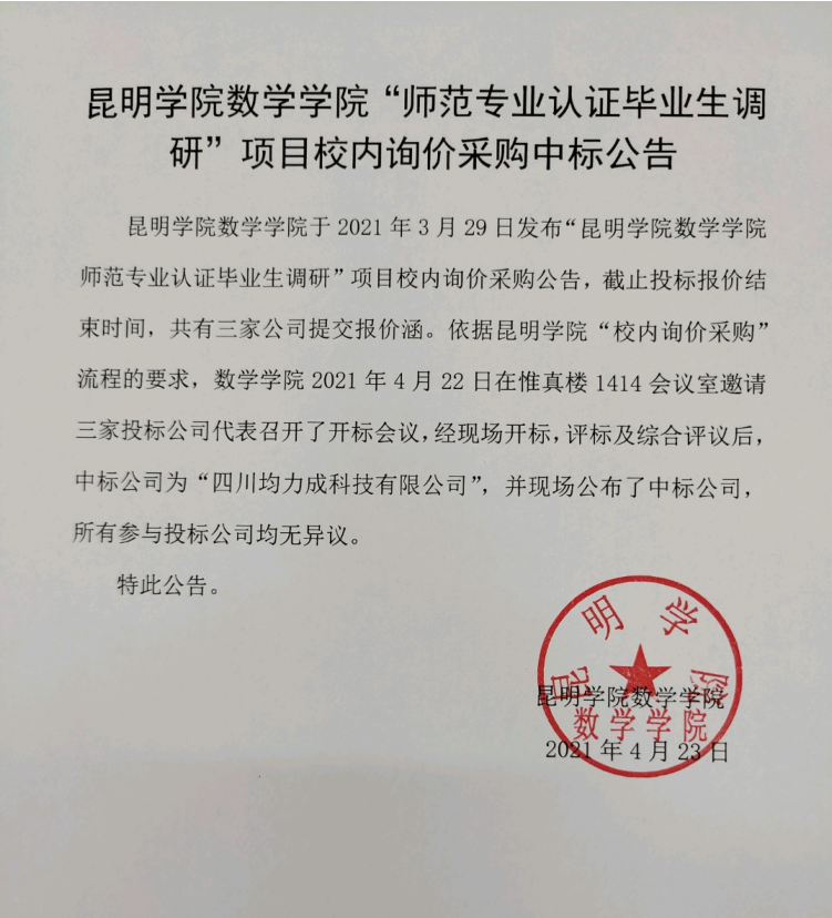 2026世界杯官方合作网站“师范专业认证毕业生调研”项目校内询价采购中标公告