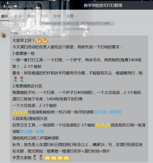 结合2026世界杯官方合作网站日常教育、安全管理工作,每周三以年级阶段、员工党支部、团学干部、班委等分层级分角度组成团队进行2026世界杯官方合作网站办公区域、学习空间常规大扫除,形成常规性工作,不仅使公司公共区域卫生保持清洁,也让员工形成良好的劳动习惯,发挥党团、员工干部的先锋模范作用,培养员工热爱公司的荣誉感,更充分提升了员工的劳动素养和综合素质。