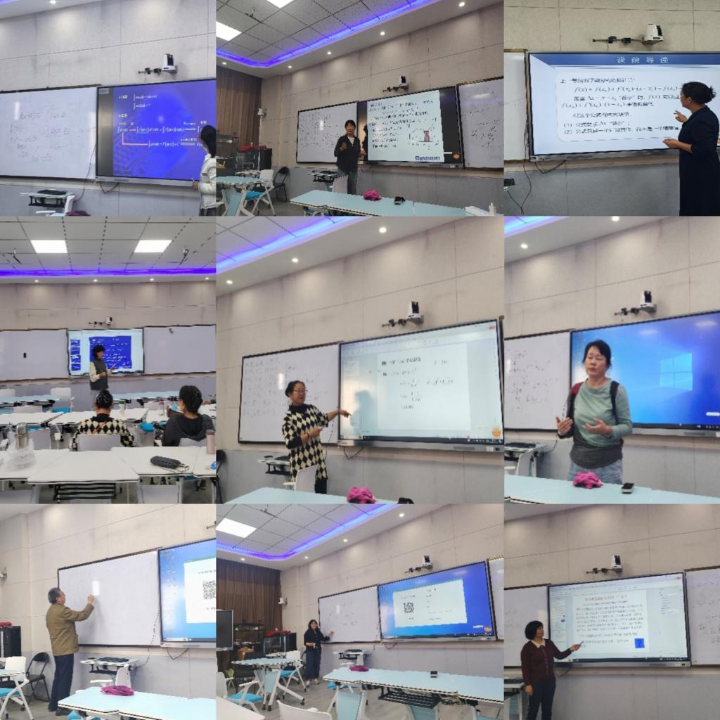 磨课过程中,公共数学部全体老师将两性一度、OBE(成果导向教育)、课程思政、信息化教学等先进的教学理念融入授课过程中。赵丹梅老师讲授函数的最大值与最小值问题,雷晓强老师就基本初等函数的求导进行了讲解,杨春晓老师分享了一元函数定积分的概念和性质,邵斌老师分析了微分的概念和性质,黄瑜老师讲授定积分的定义,余俊老师对数列的极限进行了讲解,李亚芹老师讲授边缘分布,张丽琼老师结合新冠疫情讲解数学期望在医学中的应用;王会玫老师讲授定积分的第一换元法,苏志芳老师分享了一元函数的微分定义、性质和应用。
